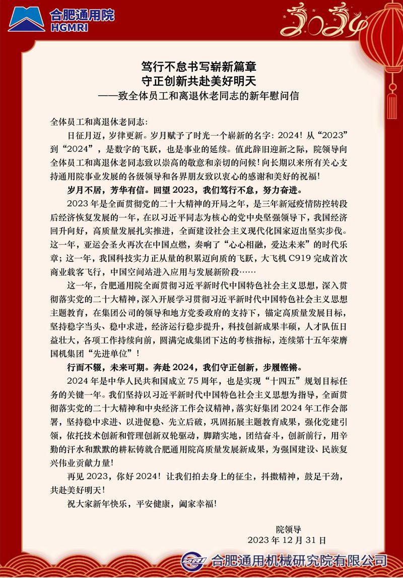 ——致全體員工和離退休老同志的新年慰問信