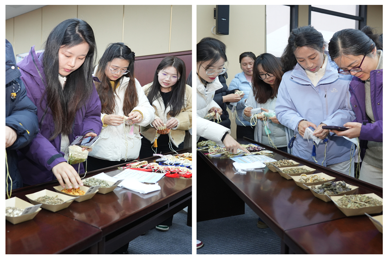 在春日養(yǎng)生香囊手作環(huán)節(jié)中,大家于指尖中感受非遺文化魅力,寄托對生活的熱愛和對健康的期許。藥香與歡笑交織,收獲一份專屬的春日記憶。
